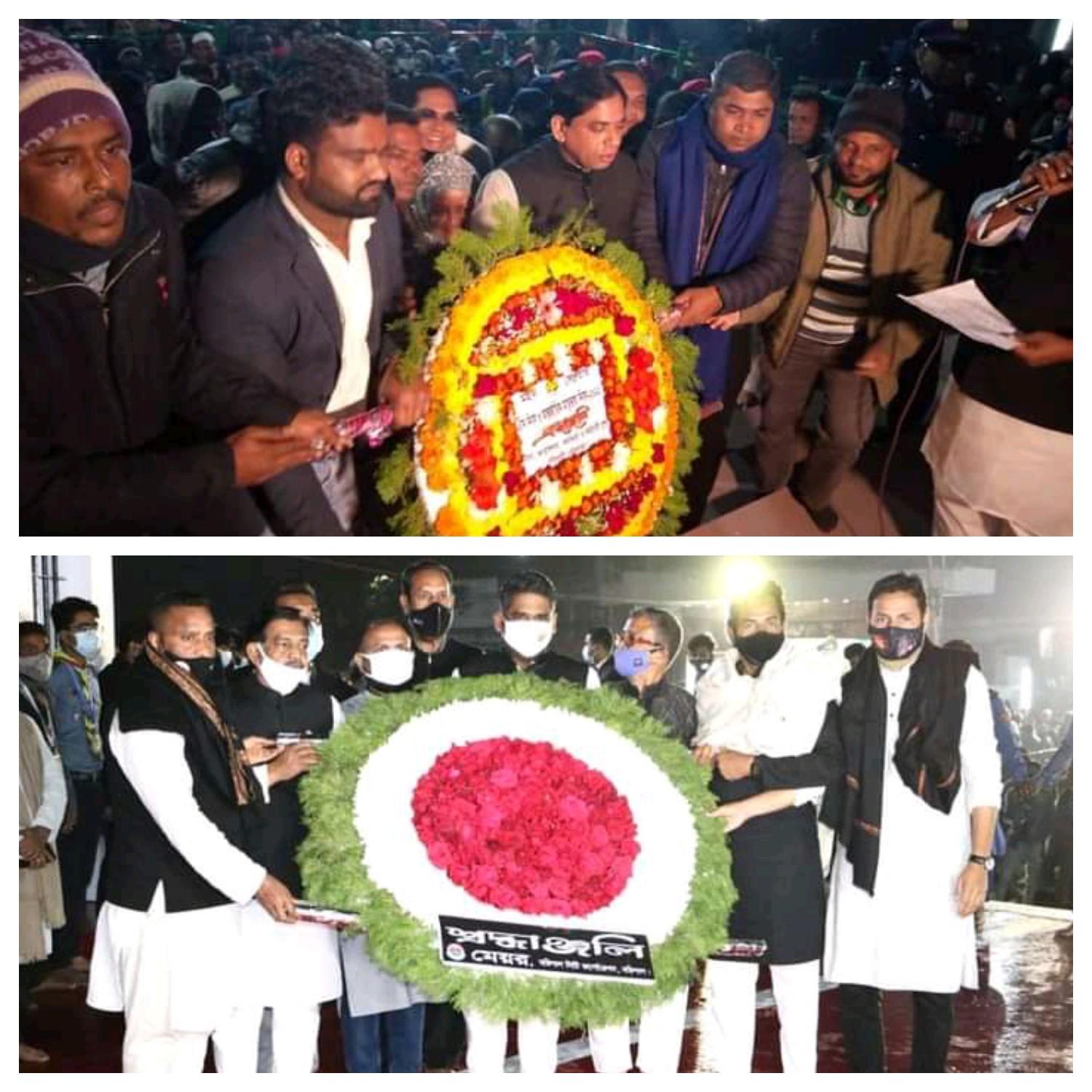 একুশের প্রথম প্রহরে বরিশালে কেন্দ্রীয় শহীদ মিনারে পুষ্পস্তবক অর্পণ