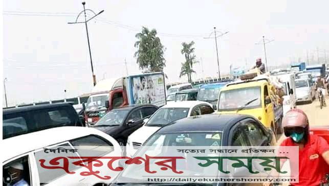 বিমানবন্দর সড়ক দীর্ঘ যানজটে নাকাল মানুষ।