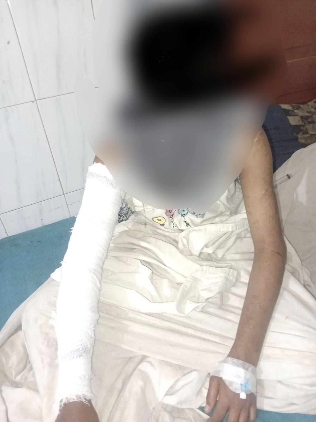 গরম পানিতে আমার ডান হাতসহ শরীর ঝলসে যায়। এছাড়াও মাথার চুল কেটে দিয়েছে।