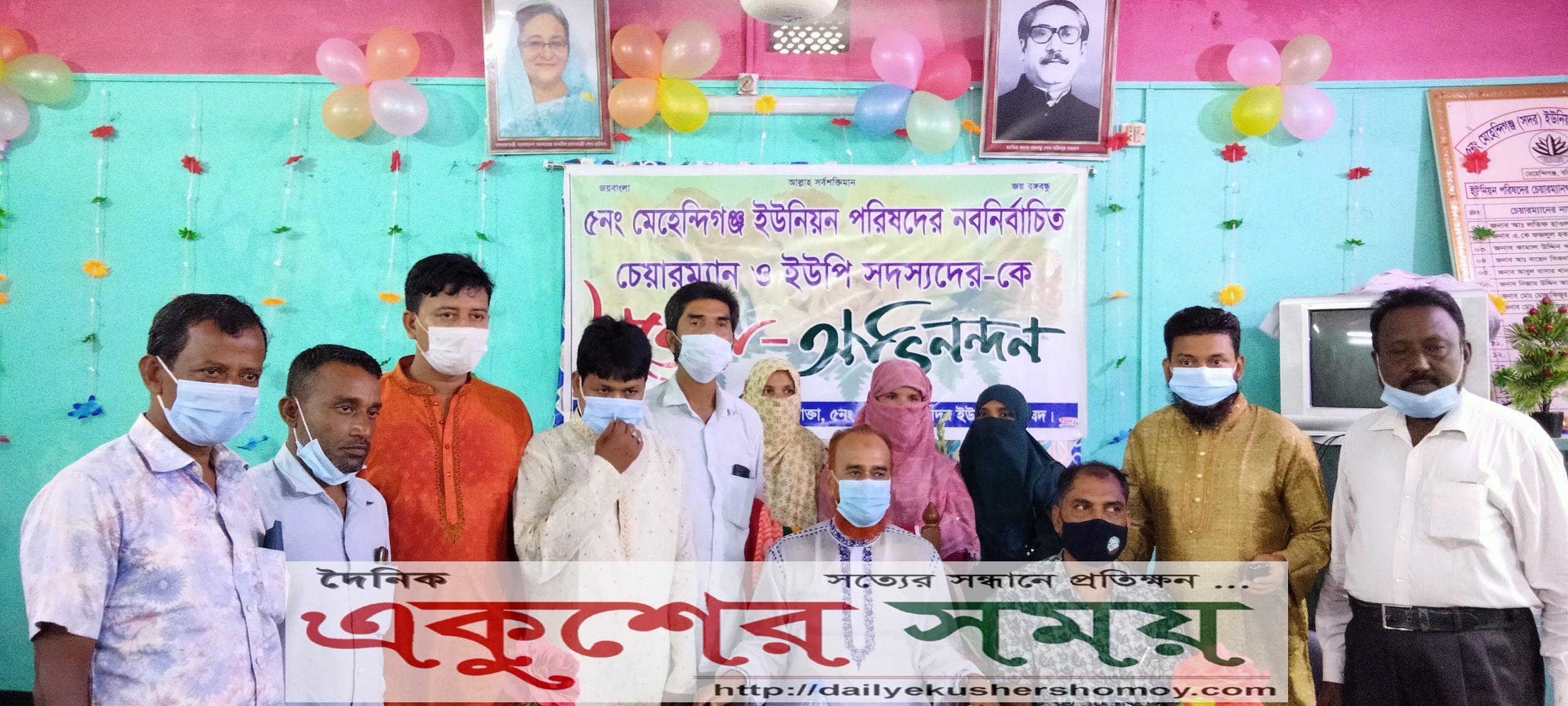 ৫নং মেহেন্দিগঞ্জ ইউনিয়ন পরিষদের নবনির্বাচিত চেয়ারম্যান-ইউপি সদস্যদের শুভেচ্ছা বিনিময় ও পরিচিতি সভা অনুষ্ঠিত হয়েছে। বুধবার সকাল ১১টায় দোয়া মোনাজাতের মাধ্যমে অনুষ্ঠানের শুভ সূচনা করা হয়।