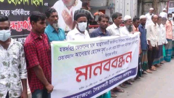 বরিশালের বানারীপাড়া উপজেলার সৈয়দকাঠী ইউনিয়নের জেলেদের সামাজিক নিরাপত্তা কর্মসূচির চাল আত্মসাত করার অভিযোগে অভিযুক্ত ইউপি চেয়ারম্যান ও মেম্বরের বিচারের দাবিতে মানববন্ধন অনুষ্ঠিত হয়েছে।