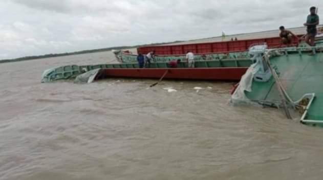 হিজলায় বিপুল পরিমাণে চিনি বোঝাই জাহাজ ডুবি