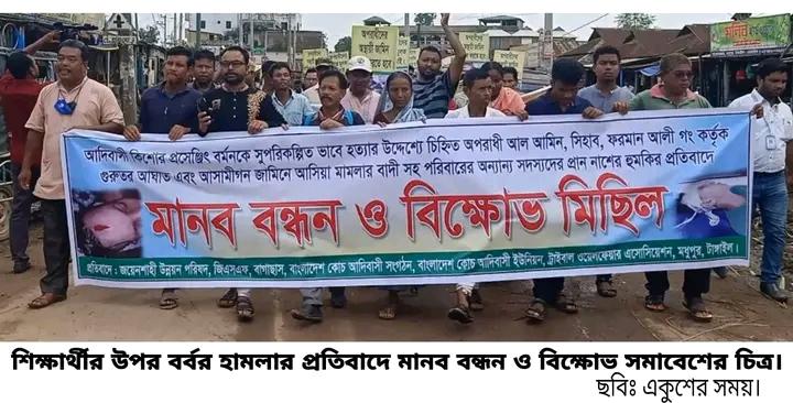 টাঙ্গাইলের মধুপুরে শিক্ষার্থীর উপর হামলার প্রতিবাদে মানব বন্ধন ও বিক্ষোভ সমাবেশ অনুষ্ঠিত
