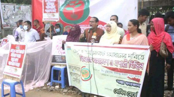 ডেঙ্গু ও অর্থ সংকট সমাধানের দাবিতে বিক্ষোভ সমাবেশ ও মশারি মিছিলে লিখিত প্রতিবেদনে নেতৃবৃন্দ জানিয়েছেন, ১ জানুয়ারি থেকে ৩ নভেম্বর পর্যন্ত শুধুমাত্র দায়িত্বে অবহলো-অপরিচ্ছন্ন নগর-শহর-গ্রামে এডিশ মশার বিস্তারের কারণে ডেঙ্গু জ¦রে আক্রান্ত হয়েছে ৭১ হাজার ৩৫২ জন এবং এবং যথাযথ চিকিৎসা না পাওয়াসহ বিভিন্ন কারণে মৃত্যুবরণ করেছেন ৫১৭ জন।