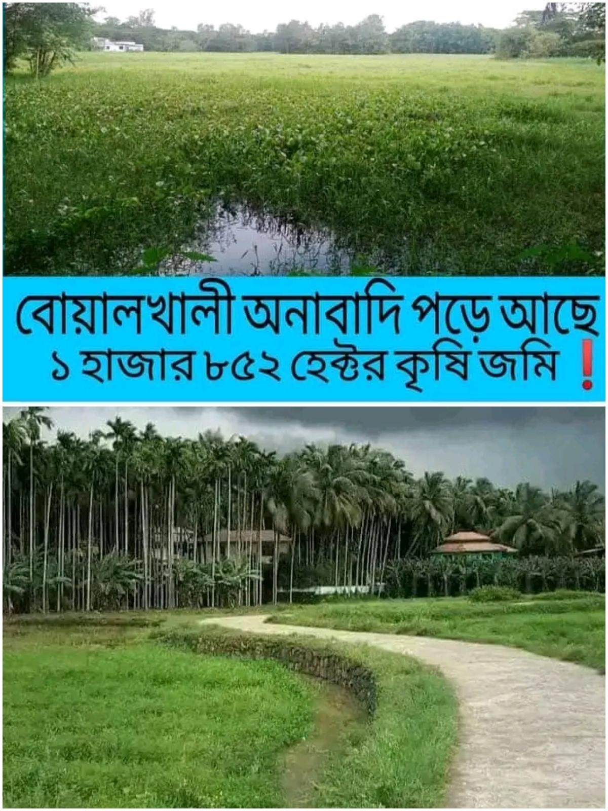মাননীয় প্রধানমন্ত্রী শেখ হাসিনা বারবার তাগাদা দিচ্ছেন এক ইঞ্চি জমিও যেন অনাবাদি না থাকে অথচ চট্টগ্রামের বোয়ালখালী উপজেলায় এই চিত্র সম্পূর্ণ ভিন্ন।