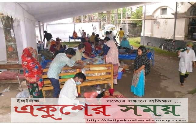 এদিকে সরেজমিনে হাসপাতালে গিয়ে রোগীদের চরম ভোগান্তির চিত্র দেখা গেছে। ডায়রিয়া ওয়ার্ডের ভিতরে, বারান্দা এবং ওয়ার্ডের সামনে সামিয়ানা টানিয়ে চিকিৎসা দেয়া হচ্ছে রোগীদের। অনেকে মাঠে শুয়েও চিকিৎসা নিচ্ছেন।