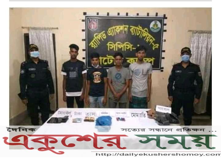 র্যাব-৫ এর অভিযানে ৪ জুয়াড়ী আটক খেলার সরঞ্জামসহ।