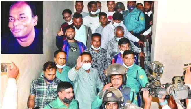 রাজশাহীর ছাত্রলীগ নেতা শাহীন আলম (ইনসেটে) হত্যা মামলার রায়ের পর বৃহস্পতিবার আসামিদের কারাগারে নেওয়া হচ্ছে -যুগান্তর