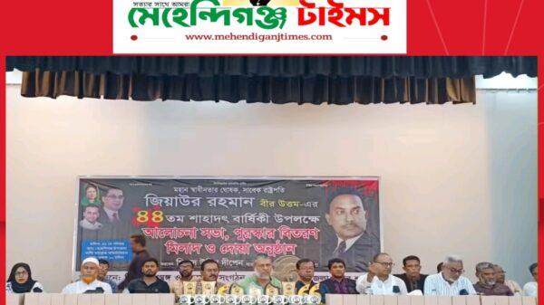 ফয়সাল হাওলাদার// শহীদ রাষ্ট্রপতি জিয়াউর রহমান বীর উত্তমের ৪৪তম শাহাদাৎ বার্ষিকী উপলক্ষে মেহেন্দিগঞ্জ উপজেলা বিএনপি‘র উদ্ব্যোগে আলোচনা সভা, পুরস্কার বিতরণ, দোয়া মাহফিল ও খাবার বিতরণ করা হয়েছে। উপজেলা বিএনপির আহবায়ক