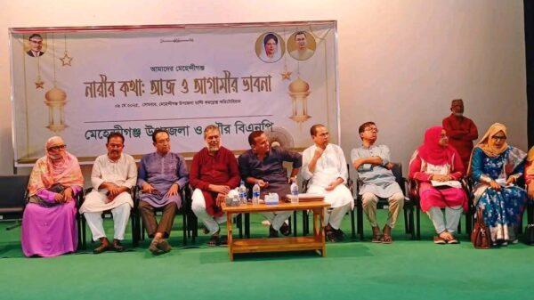 মেহেন্দিগঞ্জ টাইমস নিউজ ডেস্ক// “নারীর কথা: আজ এবং আগামীর ভাবনা”—এই প্রতিপাদ্যে আজ মেহেন্দিগঞ্জ উপজেলার মাল্টি পারপাস অডিটোরিয়ামে অনুষ্ঠিত হলো এক হৃদয়ছোঁয়া আলোচনা সভা। মেহেন্দিগঞ্জ উপজেলা বিএনপি ও পৌর শাখা, মহিলা