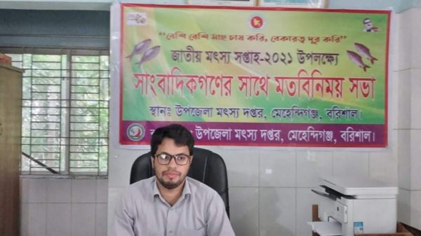 রাজিব তাজ // ‘বেশি বেশি মাছ চাষ করি, বেকারত্ব দূর করি’ এই প্রতিপাদ্য নিয়ে বরিশাল জেলার মেহেন্দিগঞ্জ উপজেলায় জাতীয় মৎস্য সপ্তাহ-২০২১ উপলক্ষে সাংবাদিকদের সঙ্গে মতবিনিময় সভা অনুষ্ঠিত হয়েছে। ২৮ আগস্ট