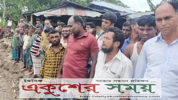 মেহেন্দিগঞ্জে মাসকাটা’র ভাঙনে বাঁধ নির্মাণের দাবিতে সিন্নিরচরবাসীর মানববন্ধন।