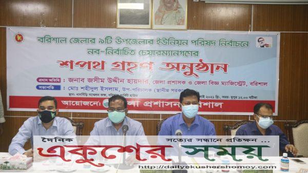 অনলাইন ডেস্ক // বরিশালে ইউনিয়ন পরিষদ নির্বাচনে নব-নির্বাচিত ৪৯ জন ইউনিয়ন পরিষদ চেয়ারম্যান কে শপথ পাঠ করান জেলা প্রশাসক জসীম উদ্দীন হায়দার। গত ২১ জুন সুষ্ঠু অবাধ নিরপেক্ষ নির্বাচনের মধ্যে