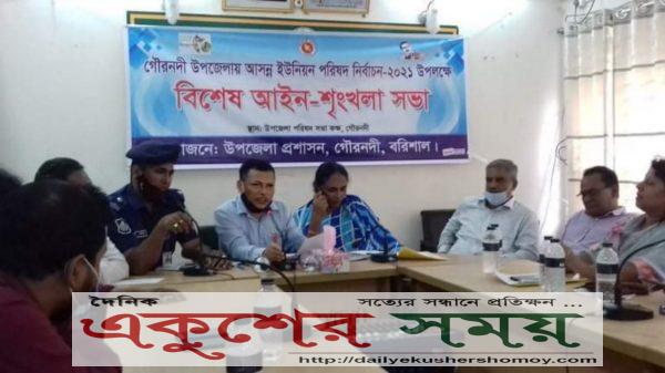 মোঃ মনিরুল ইসলাম লিমন // বরিশালের গৌরনদী উপজেলায় অাসন্ন ইউনিয়ন পরিষদ নির্বাচন -২০২১ উপলক্ষে বিশেষ আইন শৃঙ্খলা সভা আজ বৃহস্পতিবার সকালে উপজেলা পরিষদ সভা কক্ষে অনুষ্ঠিত হয়েছে । উপজেলা নির্বাহী