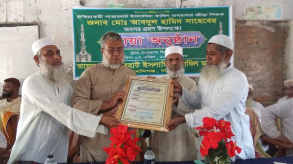 মাহমুদুল হাসান ফরিদ //মেহেন্দিগঞ্জের ঐতিহ্যবাহী আরবি বিদ্যাপিঠ পাতারহাট ইসলামিয়া ফাজিল মাদ্রাসার ক্রীড়া শিক্ষক মোঃ আবদুল হামিদের অবসর গ্রহন উপলক্ষে দোয়া অনুষ্ঠান অনুষ্ঠিত হয়েছে। বৃহস্পতিবার সকাল ১১টায় মাদ্রাসা মিলনায়তনে অনুষ্ঠিত উক্ত অনুষ্ঠানে প্রধান অতিথি হিসাবে উপস্থিত ছিলেন মাদ্রাসার ম্যানেজিং কমিটির নবনির্বাচিত সভাপতি ও উপজেলা বিএনপির আহবায়ক গিয়াস উদ্দিন দিপেন। মাদ্রাসার অধ্যক্ষ