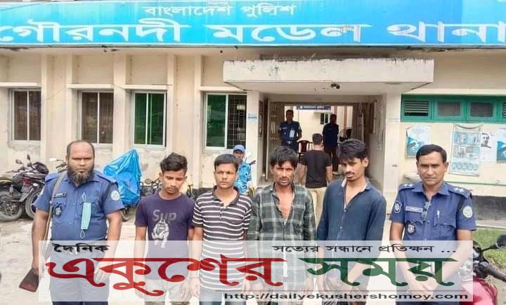 বরিশালের গৌরনদী মডেল থানা পুলিশ গরু চুরি করে পিকআপে নিয়ে যাওয়াওয়ার সময় শুক্রবার ভোররাতে আন্তঃজেলা চোর চক্রের ৪ জন সদ্স্যকে গ্রেপ্তার করেছে। এ ঘটনায় থানায় মামলা দায়ের করা হয়েছে। গ্রেপ্তারকৃতরা হলো, বরগুনা জেলার তালতলী উপজেলার বেতীপাড়া গ্রামের কাদের প্যাদার পুত্র তৈয়ব আলী প্যাদা (৫০), একই গ্রামের সৈয়দ ফকিরের পুত্র আমিনুল ফকির (২৩), ব্রাক্ষণবাড়িয়া জেলার সরাইল উপজেলার শাহাবাজপুর গ্রামের শফিকুল ইসলামের পুত্র শুভ মিয়া (৩২) ও গৌরনদী পৌরসভার দিয়াশুর গ্রামের সেলিম সরদারের পুত্র রবিউল হাসান (৩২)। এর মধ্যে ধৃত আসামি তৈয়ব আলী প্যাদার বিরুদ্ধে ঝালকাঠী, বরগুনা, পটুয়াখালি, মাদারীপুর, নলছিটি থানায় একাধিক ডাকাতি ও চুরির মামলা রয়েছে।