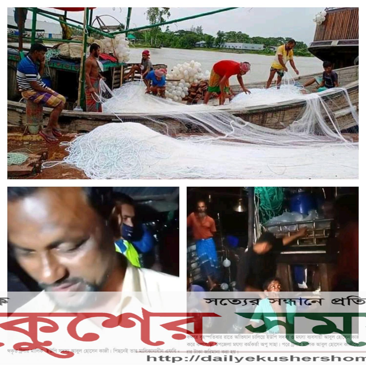 ট্রলার মালিক ও আড়তদার আবুল হোসেন কাজীকে নিষেধাজ্ঞাকালীন মাছ শিকারের দায়ে ৪০ হাজার টাকা জরিমানা করে উপজেলা মৎস্য কর্মকর্তা অপু সাহা।