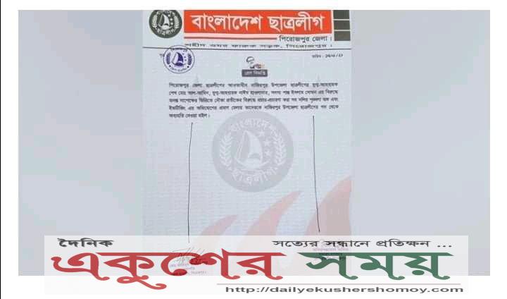 রোববার রাতে জেলা ছাত্রলীগের সভাপতি জাহিদুল ইসলাম টিটু ও সাধারণ সম্পাদক অনিরুজ্জামান অনিক স্বাক্ষরিত এক প্রেস বিজ্ঞপ্তিতে এই তথ্য জানানো হয়।