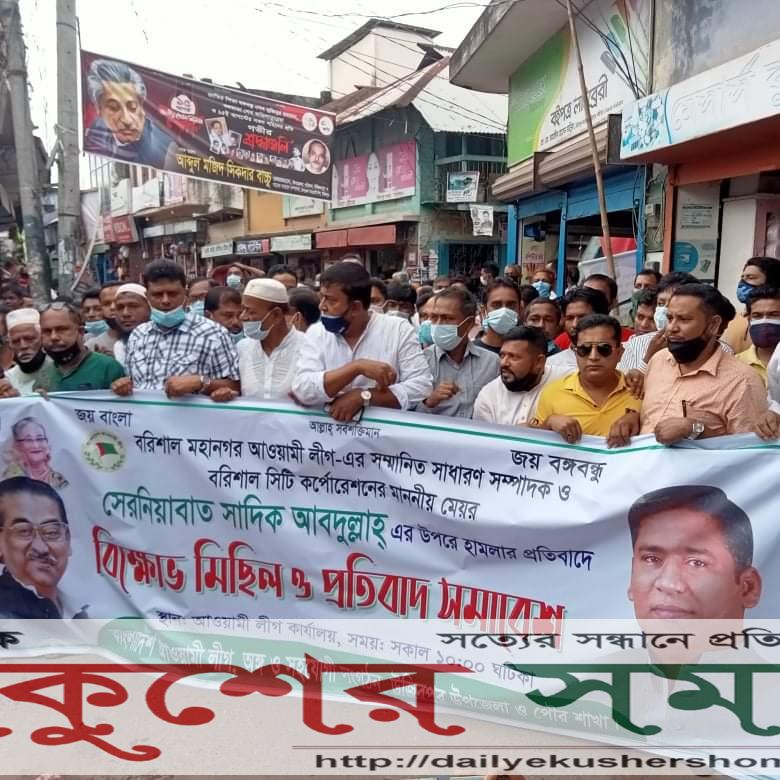 নাজমুল হক মুন্না ::বরিশালসিটি কর্পোরেশনের মেয়র ও মহানগর আওয়ামী লীগের সাধারণ সম্পাদক সেরনিয়াবাত সাদিক আব্দুল্লাহকে লক্ষ্য করে ইউএনও’র নির্দেশে গুলিবর্ষণ ও নেতাকর্মীদের ওপর ষড়যন্ত্রমূলকভাবে হামলা, মামলার প্রতিবাদে উজিরপুর উপজেলা আওয়ামীলীগের বিক্ষোভ মিছিল ও প্রতিবাদ সভা অনুষ্ঠিত হয়েছে। শুক্রবার সকাল ১০ টায় উজিরপুর-সাতলা মহাসড়কের পৌরসভার টেম্পু স্ট্যান্ডে এ কর্মসূটি পালন করা হয়।