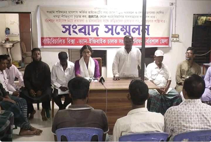 বরিশালে ব্যাটারি চালিত ইজিবাইকের লাইসেন্স নিয়ে প্রতারণা ও চাঁদাবাজির সাথে জড়িতদের দৃষ্টান্তমূলক শাস্তির দাবিতে সংবাদ সম্মেলন অনুষ্ঠিত হয়েছে। বুধবার (১১ মে) সকাল ১১টায় নগরীর ফকির বাড়ি রোড বাসদ কার্যালয়ে ব্যাটারি চালিত রিক্সা-ভ্যান-ইজিবাইক চালক সংগ্রাম পরিষদের ব্যানারে এই সংবাদ সম্মেলন অনুষ্ঠিত হয়।