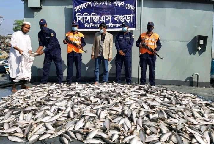 বরিশালে কোস্টগার্ডের অভিযানে ১৪শ’ কেজি জাটকা জব্দ।