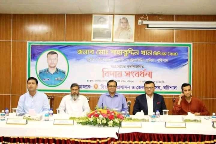 অতিরিক্ত পুলিশ মহাপরিদর্শক হিসেবে পদোন্নতি পাওয়া বরিশাল মেট্টোপলিটন পুলিশ কমিশনার মো. শাহাবুদ্দিন খানকে বিদায়ী সংবর্ধনা দেওয়া হয়েছে। গত মঙ্গলবার (১০ মে)রাতে সার্কিট হাউজের সম্মেলন কক্ষে বিভাগীয় ও জেলা প্রশাসনের উদ্যোগে এই সংবর্ধনা দেওয়া হয়।
