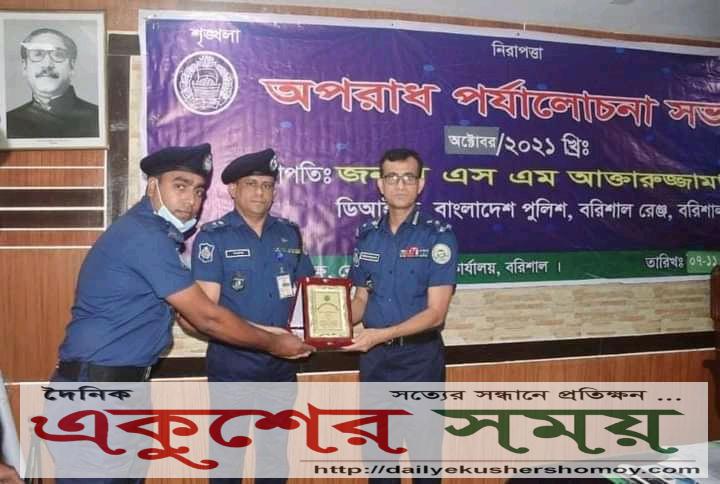 অদ্য ০৭-১১-২০২১ তারিখ সকাল ১১:০০ ঘটিকায় জনাব এস এম আক্তারুজ্জামান, ডিআইজি, বরিশাল রেঞ্জ মহোদয়ের সভাপতিত্বে বরিশাল রেঞ্জ ডিআইজি'র কার্যালয়ের সম্মেলন কক্ষে বরিশাল রেঞ্জের অক্টোবর/২০২১ মাসের অপরাধ পর্যালোচনা অনুষ্ঠিত হয়। অপরাধ পর্যালোচনা সভায় রেঞ্জের বেস্ট অফিসারদের মাঝে ক্রেস্ট ও সনদপত্র প্রদান করা হয়।সনদপত্র গ্রহণ করেন, মেহেন্দিগঞ্জ থানার