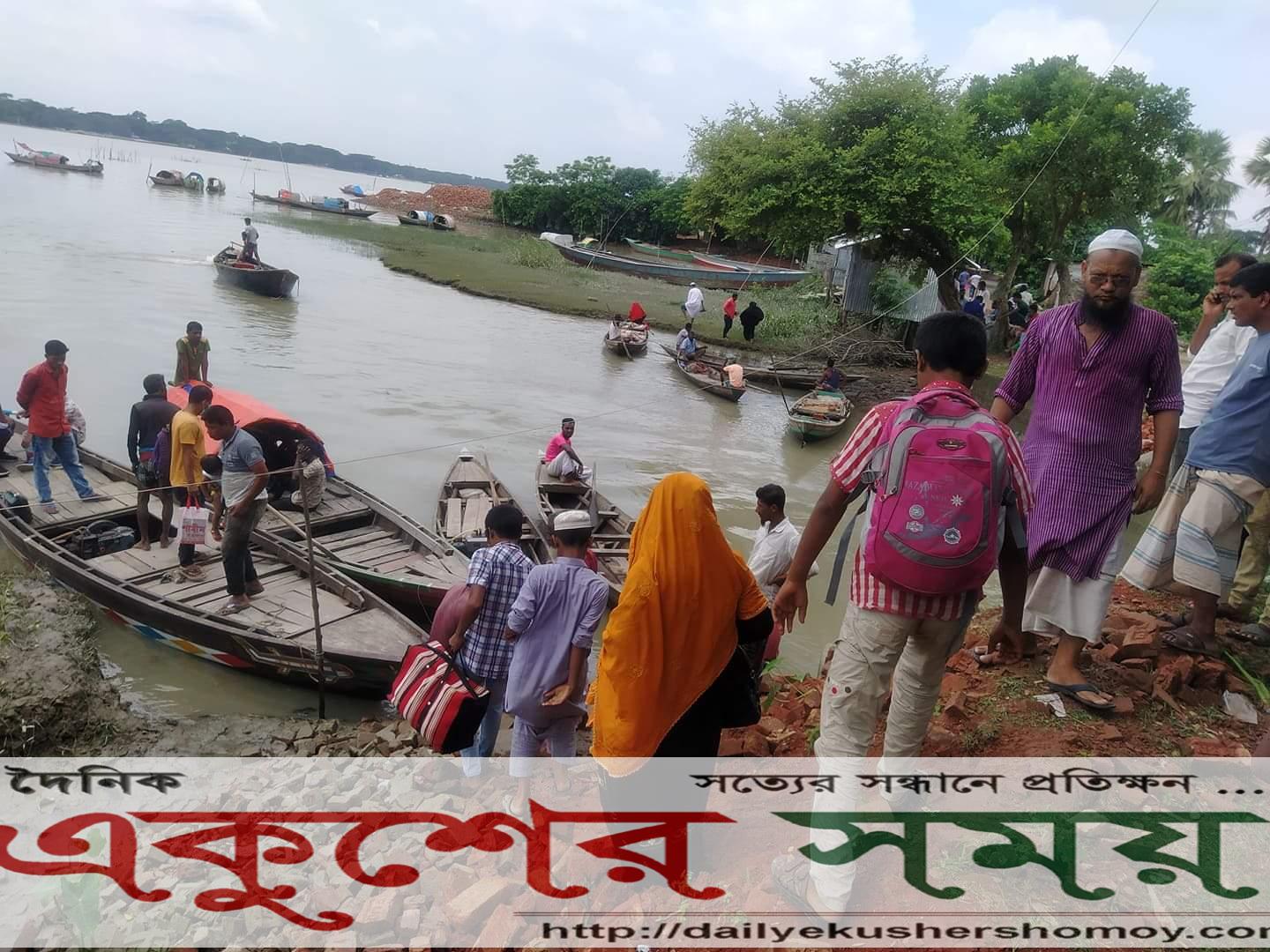 বেলতলায় জীবনের ঝুঁকি নিয়ে ডিঙ্গি নৌকায় যাত্রী পারাপার!