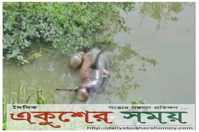 বোয়ালখালীতে খালে ভাসছে মরা ডলফিন।