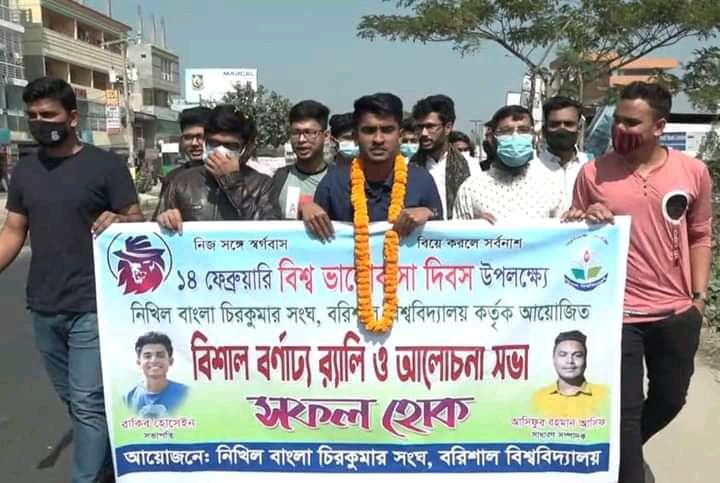 ভালোবাসা দিবস বর্জন করে বরিশাল বিশ্ববিদ্যালয়ে চিরকুমার সংঘের মিছিল