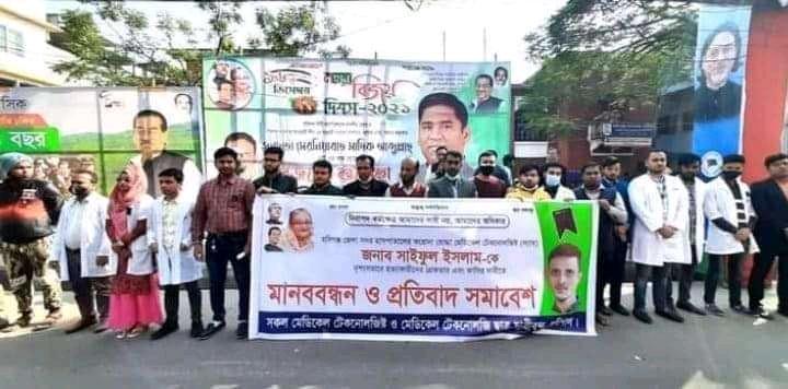তিনি আরও বলেন, মানবতার মা জননেত্রী প্রধানমন্ত্রী শেখ হাসিনার কাছে আমাদের সাধারন মেডিকেল টেকনোলজিস্টদের দাবী মেডিকেল টেকনোলজিস্টরা আপনার সন্তান। সম্মুখসারির যোদ্বা। যারা নিজেদের জীবনের তোয়াক্কা না করে করোনাকালীন সময় থেকে নিজের ও পরিবারের কথা চিন্তা না কাজ করে চলেছ।