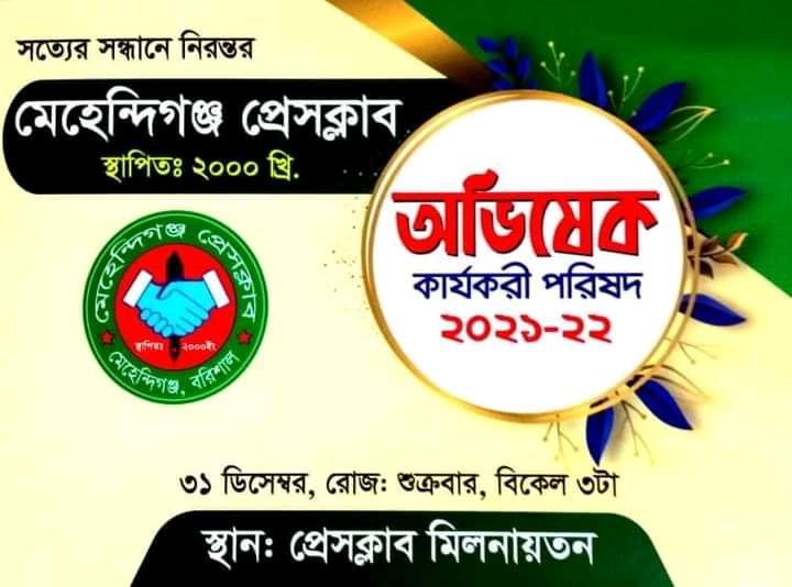 মেহেন্দিগঞ্জে কর্মরত পেশাদার সাংবাদিকদের ঐতিহ্যবাহী সংগঠন মেহেন্দিগঞ্জ প্রেসক্লাবের কার্যকরী পরিষদ ২০২১-২২’র অভিষেক অনুষ্ঠান উপলক্ষে সকল প্রস্তুতি সম্পন্ন করা হয়েছে।