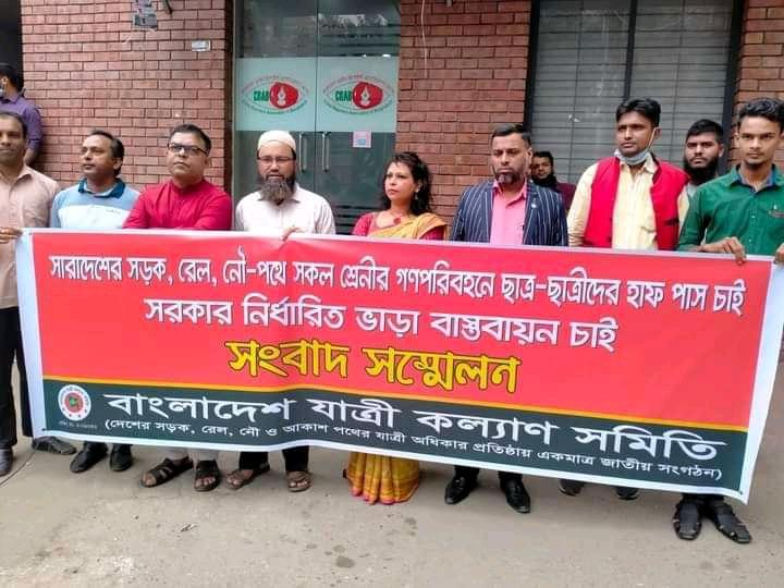 সকল গণপরিবহনে শিক্ষার্থীদের হাফ পাস ও সরকার নির্ধারিত ভাড়া কার্যকরের দাবি– যাত্রী কল্যাণ সমিতির