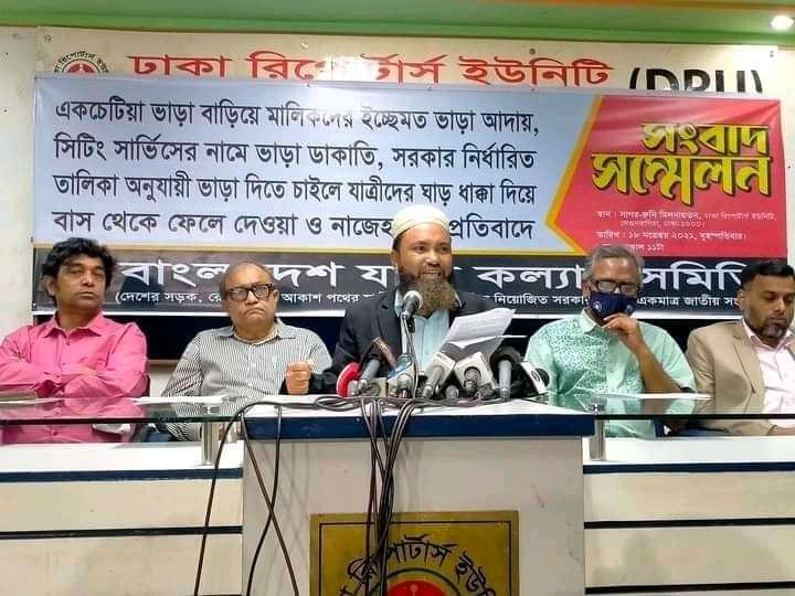 সিটিং সার্ভিসের নৈরাজ্য ও গণপরিবহনে ভাড়া নৈরাজ্য বন্ধের দাবি সংবাদ সম্মেলন—– যাত্রী কল্যাণ সমিতির