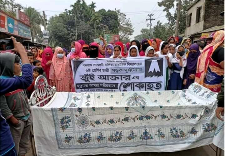 স্কুলছাত্রীর মৃত্যু : লাশ নিয়ে বরিশাল-ভোলা সড়ক অবরোধ
