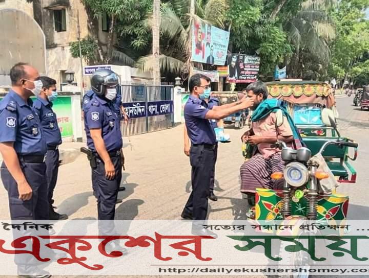 করোনা ভাইরাস (Covid-19) এর বিস্তার রোধকল্পে সরকার ঘোষিত লকডাউন কর্মসুচি পালনে শর্ত সাপেক্ষে সার্বিক কার্যাবলি/ চলাচলে নিষেধাজ্ঞা বাস্তবায়নের লক্ষ্যে আজ শনিবার (১৭ এপ্রিল) ভোলা জেলাধীন সকল থানার উদ্যোগে বিভিন্ন স্থানে (বাজার, বাসস্ট্যান্ড, রেস্টুরেন্ট, মোড়/পয়েন্টে) সকলকে মাস্ক পরতে উদ্বুদ্ধ করা, স্বাস্থ্যবিধি মেনে চলতে আহ্বান জানানো এবং অপ্রয়োজনীয় লোকজন ঘোরাফেরা রোধকল্পে চেকপোস্ট কার্যক্রম পরিচালনার খন্ডচিত্র।
