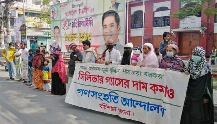 সিলিন্ডার গ্যাসসহ নিত্যপ্রয়োজনীয় দ্রব্যের দাম বৃদ্ধির প্রতিবাদে বরিশালে মানববন্ধন ও বিক্ষোভ সমাবেশ করেছে গণসংহতি আন্দোলন।