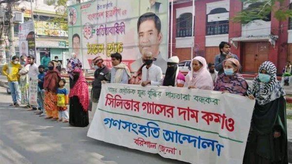 বরিশালে এলপি গ্যাসের দাম বৃদ্ধির প্রতিবাদে মানববন্ধন
