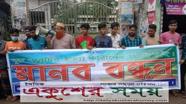 হিজলা প্রতিনিধিঃ বরিশালের হিজলা উপজেলার গুয়াবাড়িয়া ইউনিয়নের পূর্ব কোরালিয়া গ্রামের নুরু বাবুর্চি হত্যাকারীদের গ্রেপ্তার ও ফাঁসির দাবীতে বুধবার বেলা সাড়ে 11 টায় কাউরিয়া স্কুল এন্ড কলেজের সামনে এক মানববন্ধন ও