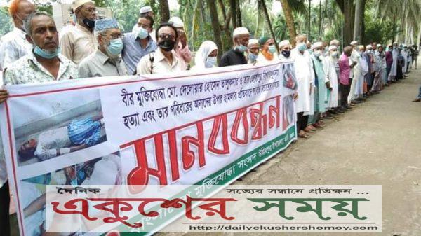 নাজমুল হক মুন্না ::বরিশালের উজিরপুরে প্রতিপক্ষের হামলায় নিহত মুক্তিযোদ্ধা ও তার ছেলে হত্যাকারীদের ফাঁসির দাবিতে মানববন্ধন করেছে উপজেলা মুক্তিযোদ্ধা কাউন্সিল। ১১আগষ্ট বুধবার সকাল ১০ টায় উপজেলা পরিষদের সামনে রাস্তার দু’পাশে