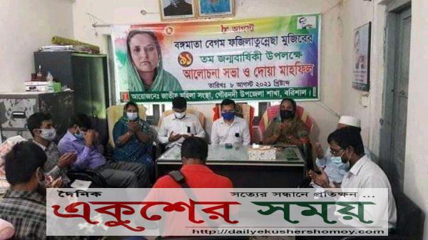 গৌরনদী প্রতিনিধিঃ বরিশালের গৌরনদী উপজেলায় বঙ্গমাতা বেগম ফজিলাতুন্নেছা মুজিবের ৯১ তম জন্মদিনে আলোচনা সভা, দোয়া ও মোনাজাত অনুষ্ঠিত হয়। জাতীয় মহিলা সংস্থা গৌরনদী উপজেলা শাখার আয়োজনে – উপজেলা মহিলা সংস্থার
