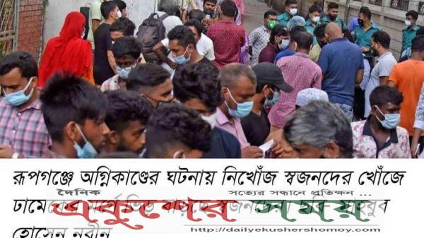 অনলাইন ডেস্ক // রূপগঞ্জে অগ্নিকাণ্ডের ঘটনার পর থেকে নিখোঁজ রয়েছেন শ্রমিক মিনা খাতুন (৪০)। শুক্রবার সারা দিন খুঁজেও কোথাও তার দেখা পাননি ছেলে দেলোয়ার। শেষে রূপগঞ্জ থেকে কিছু পথ রিকশা,
