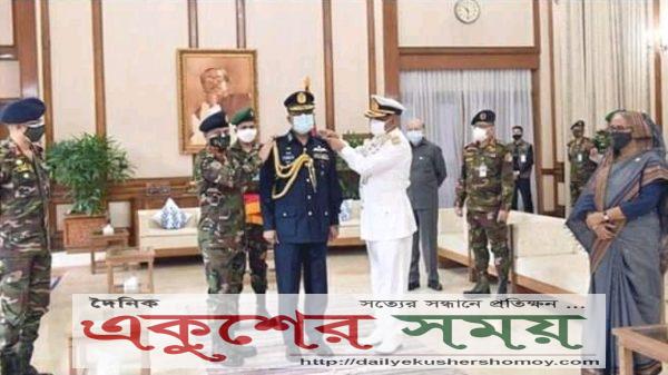 অনলাইন ডেস্কঃ নবনিযুক্ত বিমানবাহিনী প্রধান শেখ আব্দুল হান্নানকে এয়ার মার্শাল র্যাংক ব্যাজ পরানো হয়েছে। রোববার সকালে গণভবনে প্রধানমন্ত্রী শেখ হাসিনার উপস্থিতিতে তাকে এ র্যাংক ব্যাজ পরানো হয়। তাকে র্যাংক ব্যাজটি